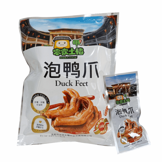 在我们当地泡鸭爪可是家喻户晓的美味小吃,它吃起来微微酸、有点辣、香脆爽口,并且含有丰富的胶原蛋白,是我们客家人离不开的下酒菜,配上我们客家的黄酒真是绝配。