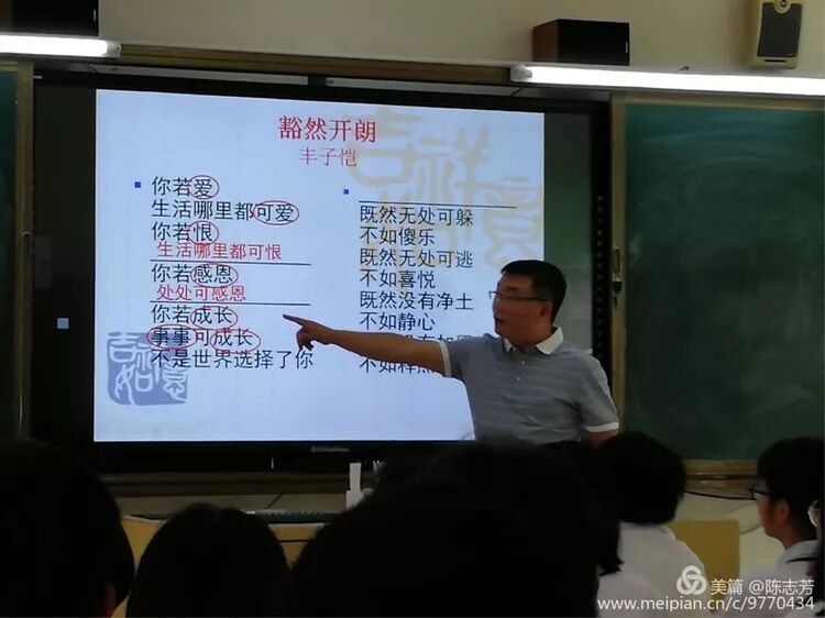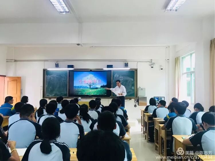 5月7日下午第一节课,工作室核心成员、龙岩市名师、龙岩一中石文美老师为高一学生带来了一堂精彩的散文鉴赏课----《生命的节日》。石老师博学多才,循循善诱,并敏锐洞察到全国卷的新动向,散文将会成为高考文学类阅读的热点与难点。此文是今年全国卷命题的备选文章,石老师从文章定体、谋篇布局、人物欣赏三个角度切入课文,长文短教,举重若轻,非常注重培养学生的文本解读能力。整个课堂有浓浓的诗意,开篇用刘和刚的歌曲《父亲》导入,中间插入著名油画《父亲》;接着展示下层人民苦难的生活照片;结尾引导学生用两个字谈感想;整堂课就是一篇动人心魄的散文诗。